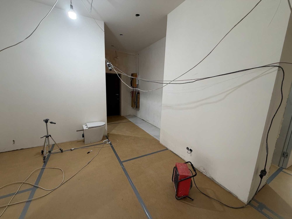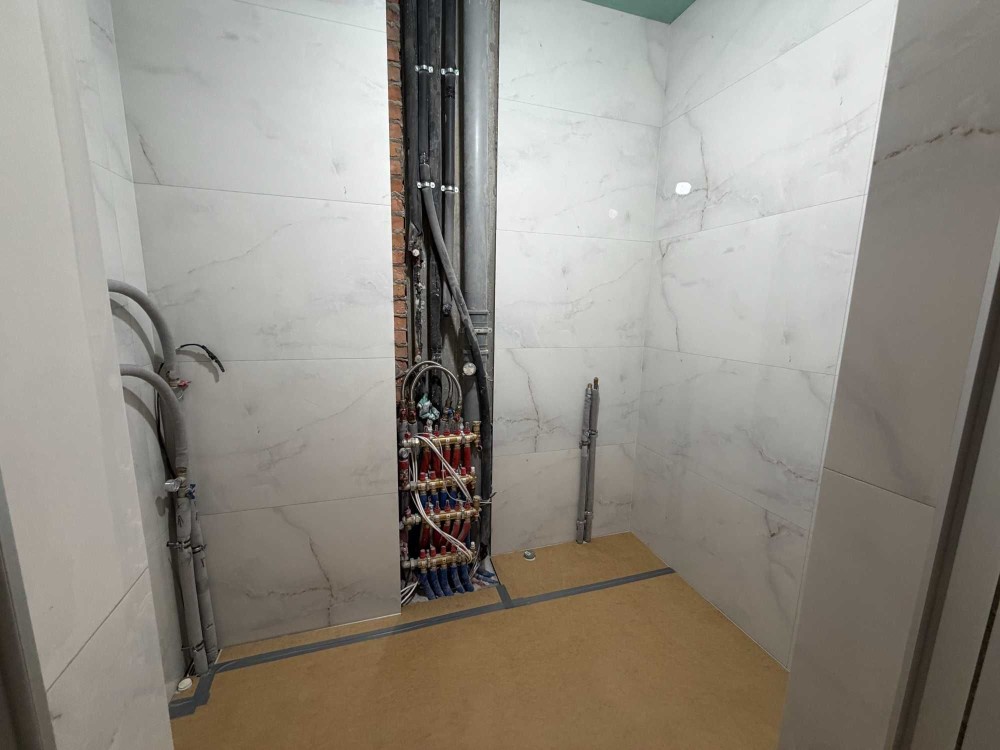 Стан: квартира з частковим ремонтом, має індивідуальне опалення, повністю покладена плитка на підлозі в кухні вітальні майже на фініші санвузли, також встановлені всі двері і вже є інвертер. Закуплені дорогі світильники. Зроблена вся водопідготовка, бойлер, тепла підлога, розведення всіх розеток і кондиціонування, чистова штукатурка на стінах.
