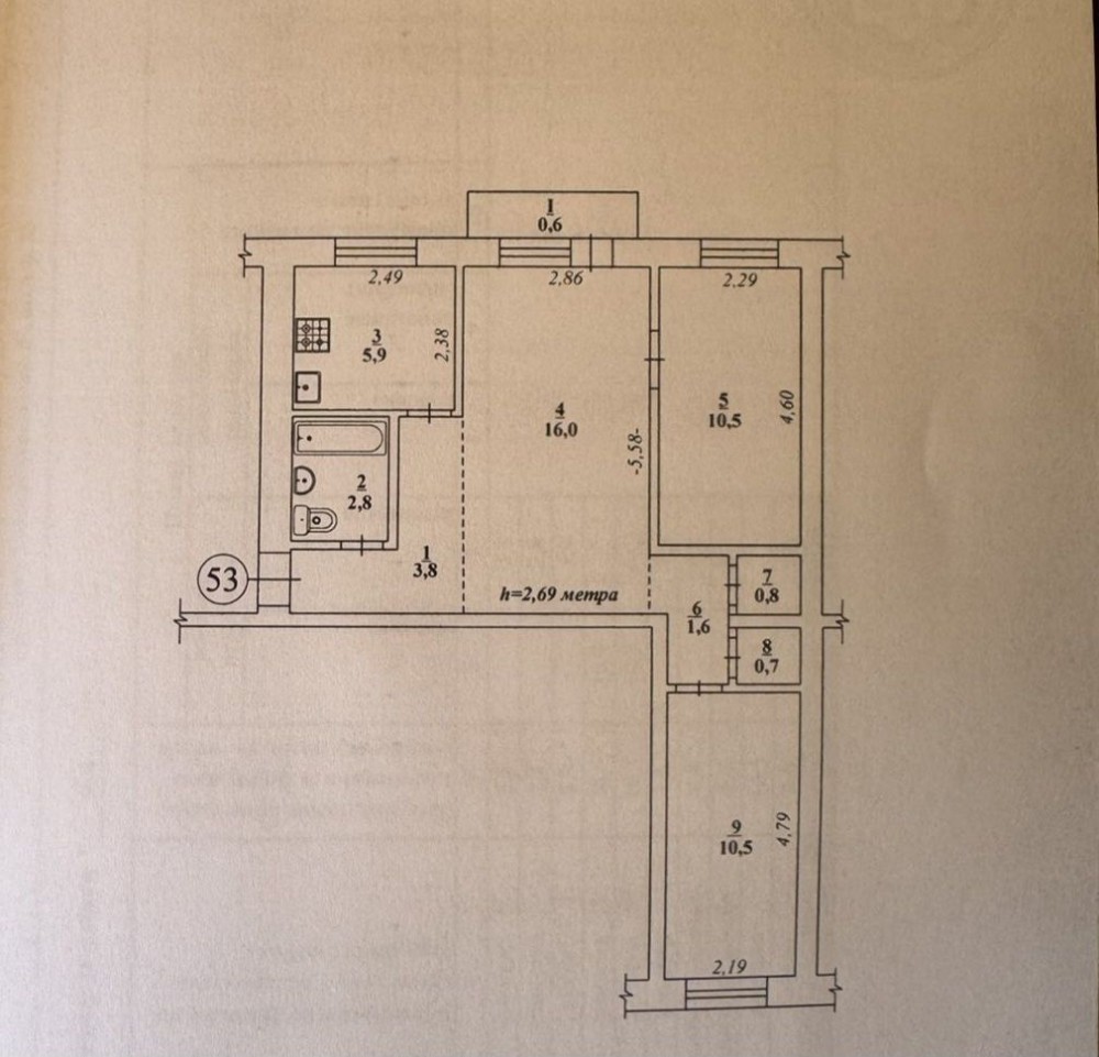 • Общая площадь 54 м2