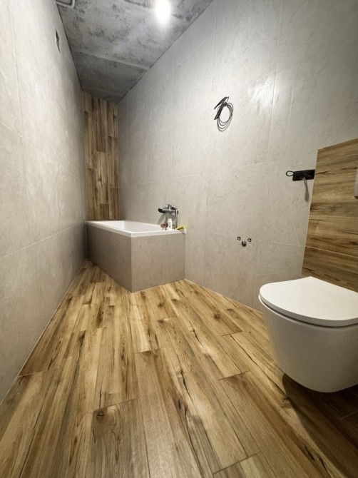 у другому санвузлі — плитка на підлозі, інсталяція та гігієнічний душ