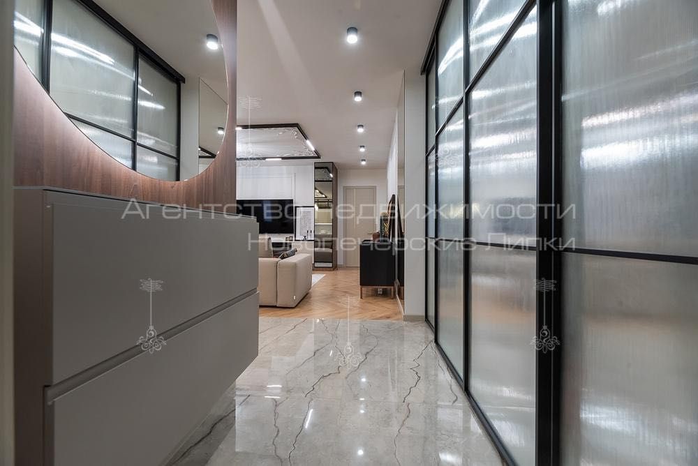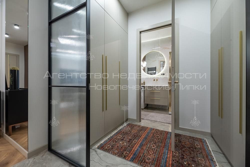 При вході в квартиру ви зустрічаєте просторий хол з оригінальним дизайном і гардеробом, який забезпечує ідеальний порядок і організацію простору.