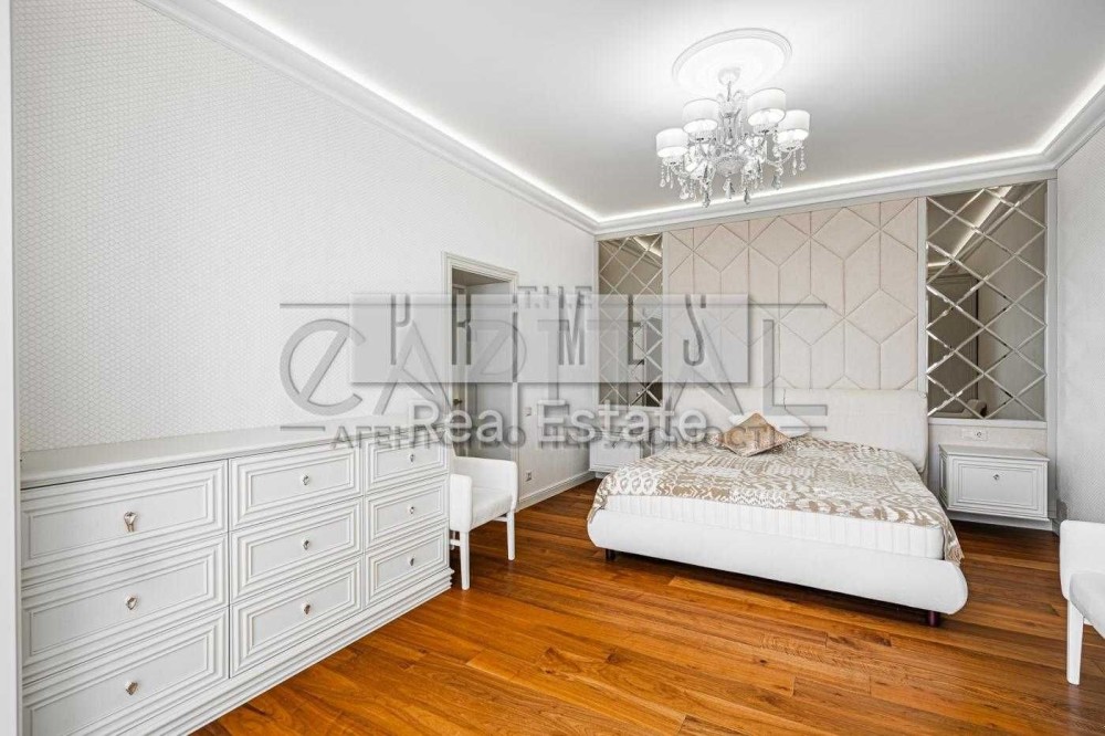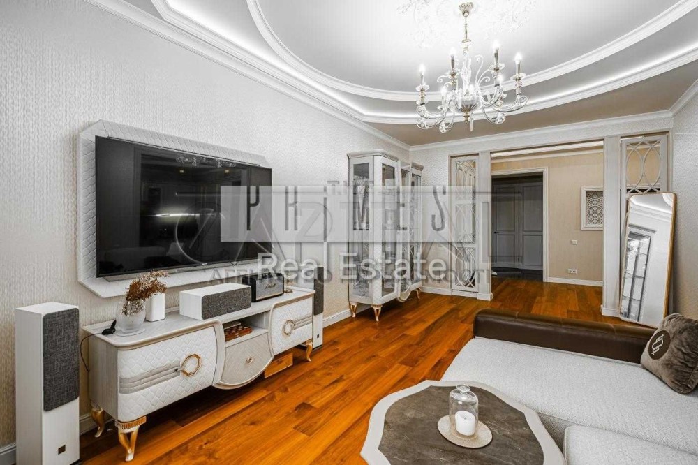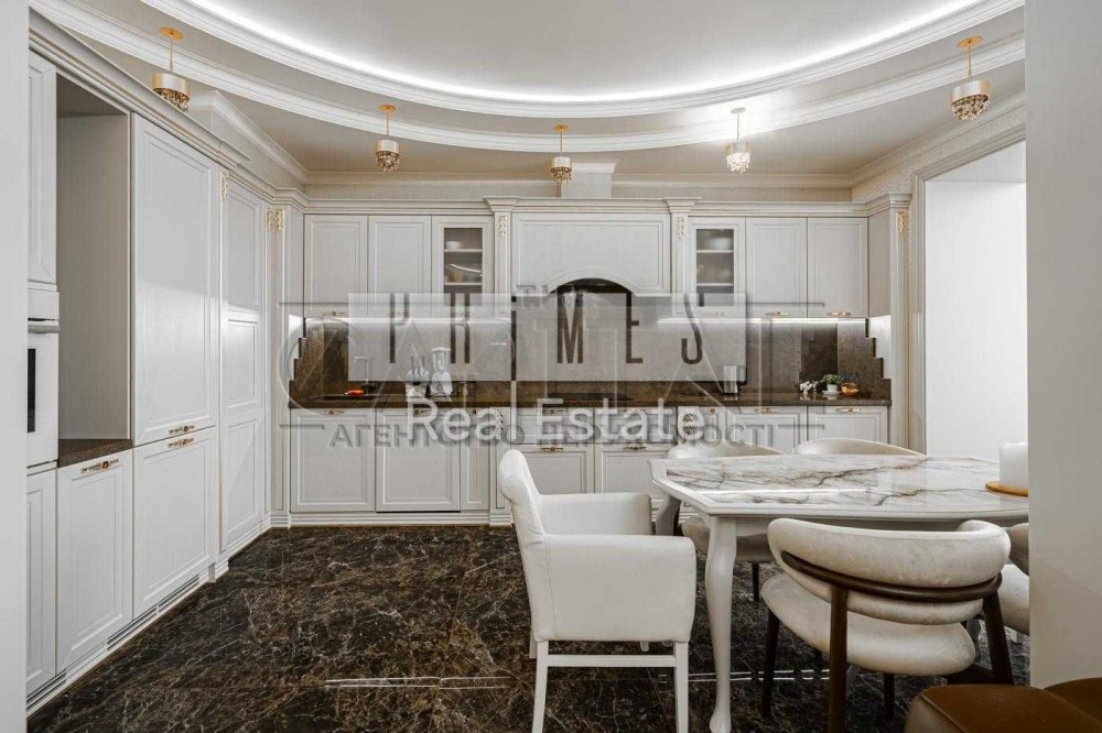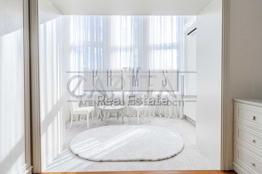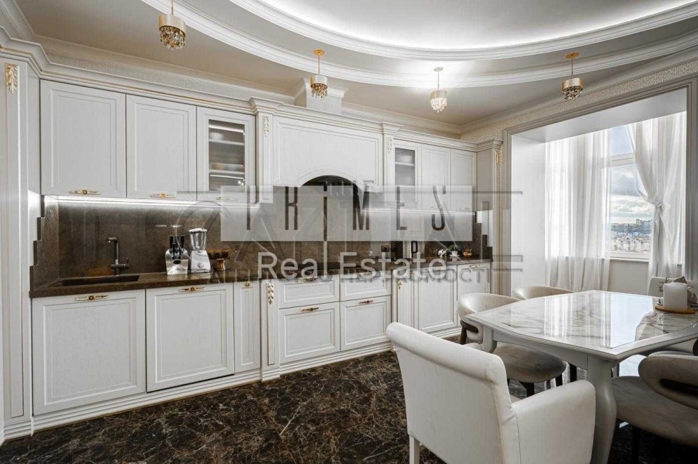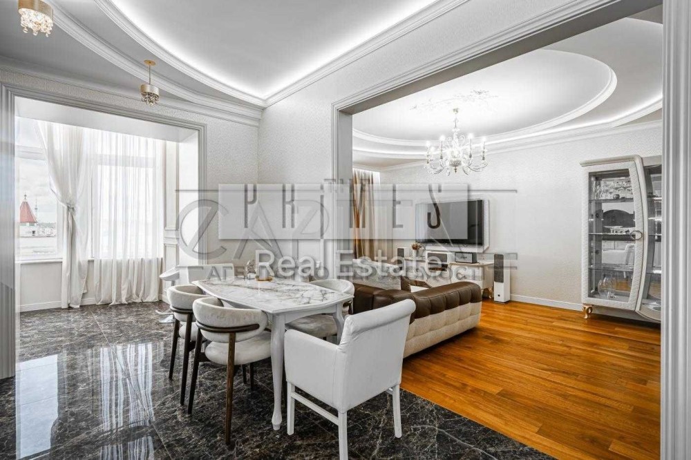 Квартира розташована на 15 поверсі 15-поверхового будинку, загальна площа — 155,6 м². Із вікон відкривається панорамний вид на Дніпро та набережну.