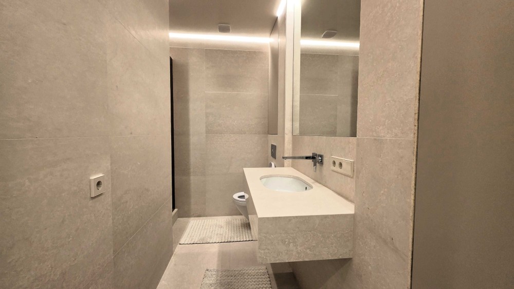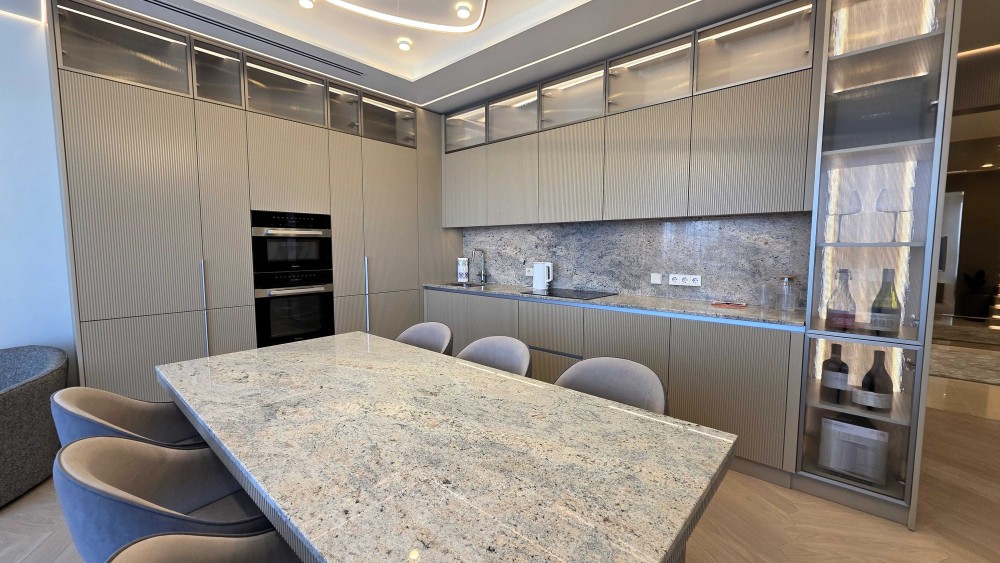 У квартирі три повноцінні санвузли, повністю оздоблені натуральним каменем.