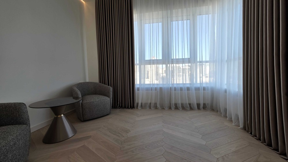Це простора квартира преміум-класу площею 184,2 м² з вражаючим панорамним видом на центр столиці. Будинок зведений у 2021 році з керамічного блоку. У ремонт квартири інвестовано понад 300 000 доларів. Всі роботи виконувались з дотриманням високих стандартів якості та з використанням дорогих матеріалів.
