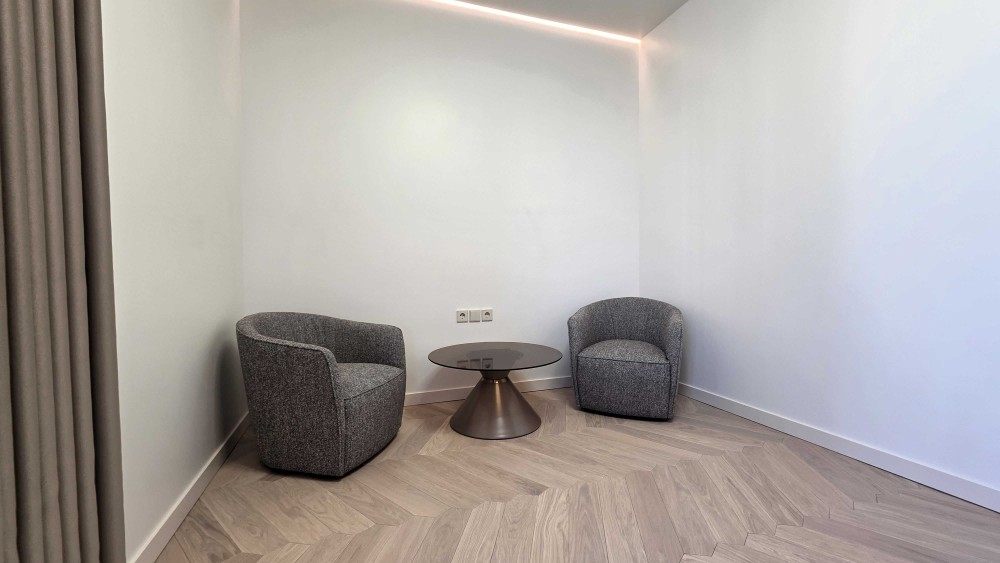 Стеля має дворівневий дизайнерський формат із вбудованою системою очищення повітря та клімат-контролем від Mitsubishi Electric.