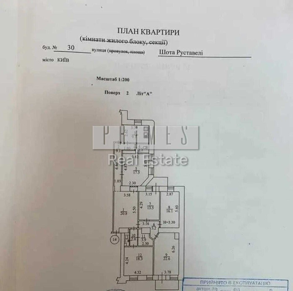 Приміщення загальною площею 152,7 кв. м. на Шота Руставелі, 30. Приміщення знаходиться на іншому поверсі житлового 4-х поверхового будинку. Вигідна інвестиція під квартиру чи офіс.