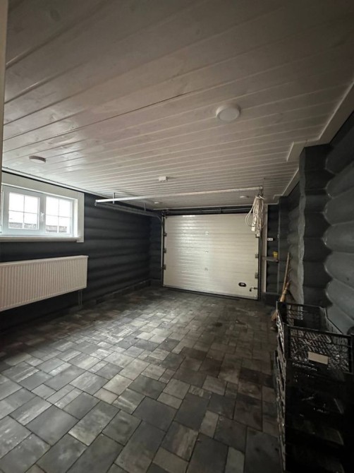 В доме имеется большой гараж в котором ворота открываются автоматически с пульта.