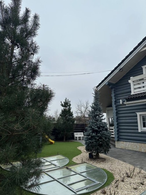 Ділянка зонована функціонально: автоматичні ворота, паркомісце на 2 авто, дитячий-спортивний майданчик,декоративний водопад,багато декоративних хвойних рослин, вольєр, генераторна(з 3 фазним генератором 7КвТ), фруктовий сад, міні город, автоматичний полив всіх зон, технічне приміщення з сауною, навіс для дрів, відеонагляд.