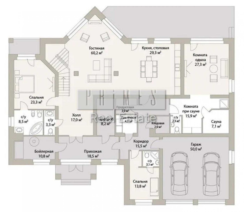 6 спалень, гараж на 2 авто, зона для персоналу зі своєю окремою кухнею.