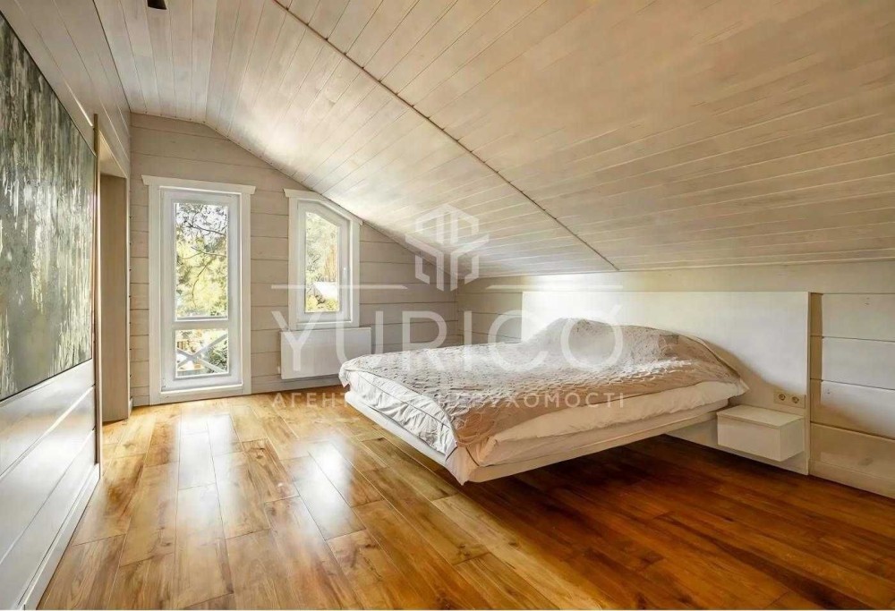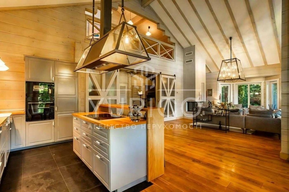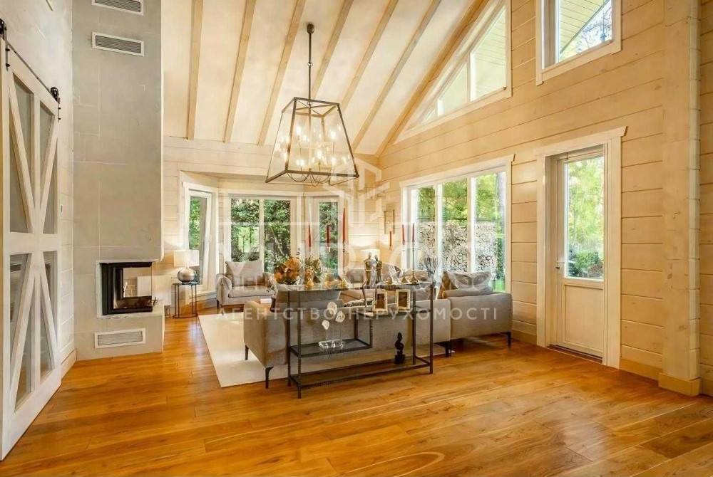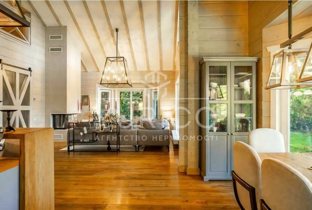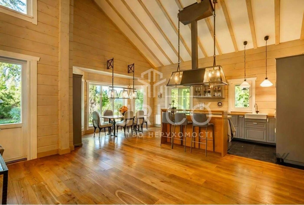 Продаж будинку в заповідній зоні міста Києва, Голосіївський район, масив Конча-Заспа, хутор Мриги. 270 м.кв. Будинок побудований по фінській технології з клеєного бруса.