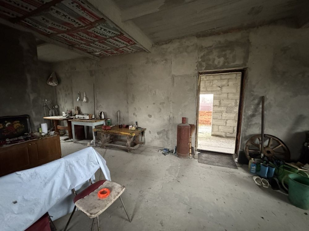 На ділянці площею 6 соток вистачає місця для саду, зони відпочинку, парковки чи літньої тераси. Будинок частково утеплений, встановлені вікна, міцна коробка, є господарські матеріали на подвір’ї.