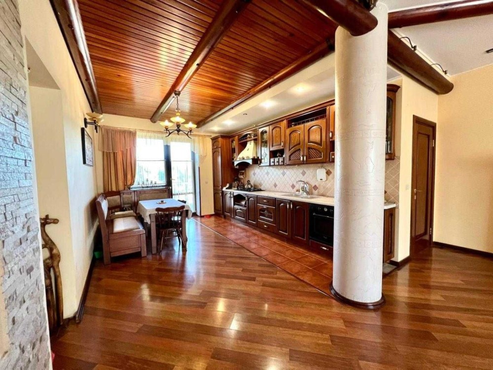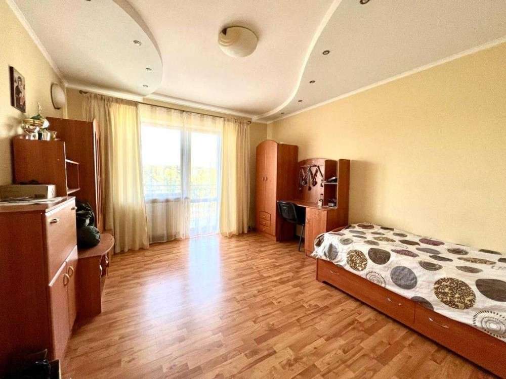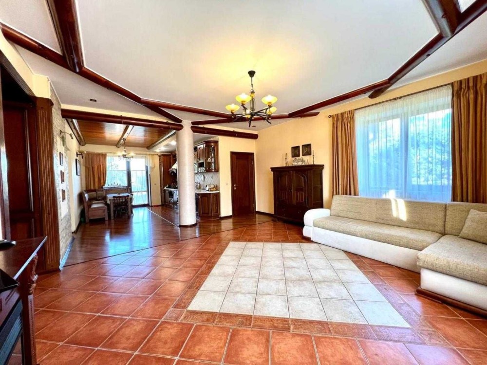Загальна площа будинку 370 кв.м, 140 кв.м - житлова площа, кухня вітальня,спортзал, гараж на 2 машини.