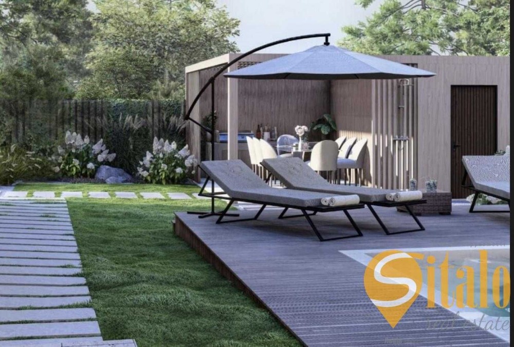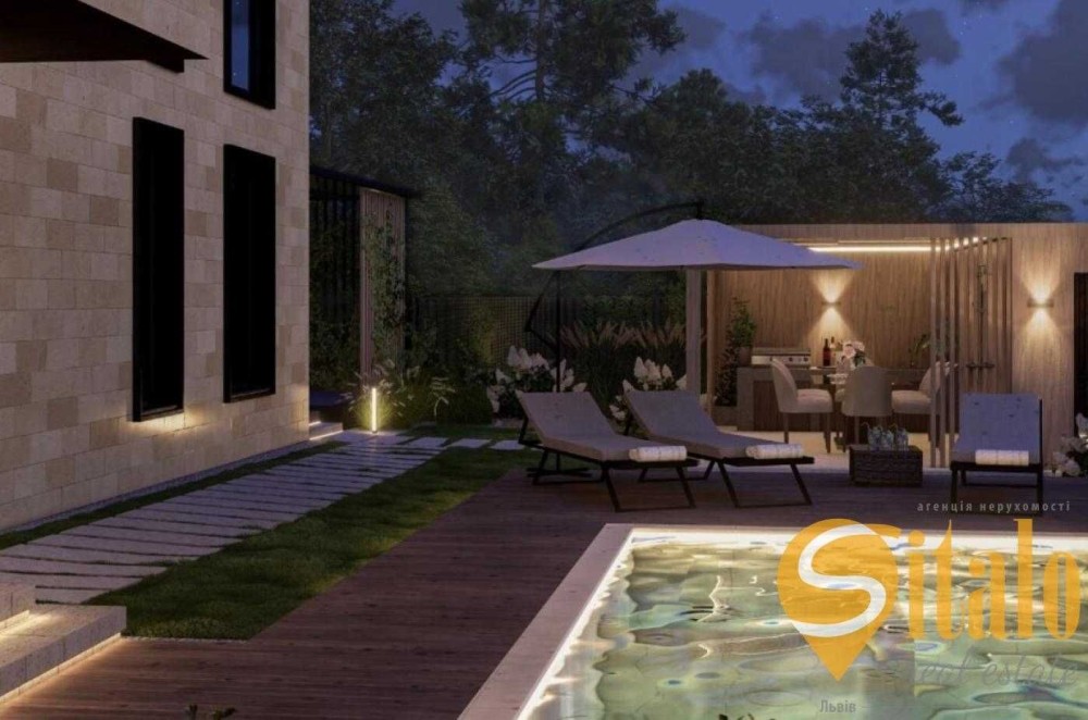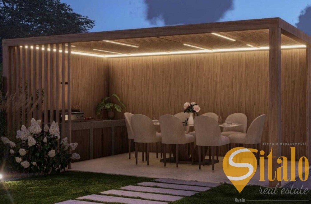 Двоповерховий будинок з терасою власним басейном , власною ділянкою та доступом до спільних зон відпочинку: басейн, зона барбекю, вогнище, кінотеатр просто неба та дитячий майданчик. Продуманий баланс між приватністю та спільними зонами природньо підлаштовують дім під життя Вашої родини.