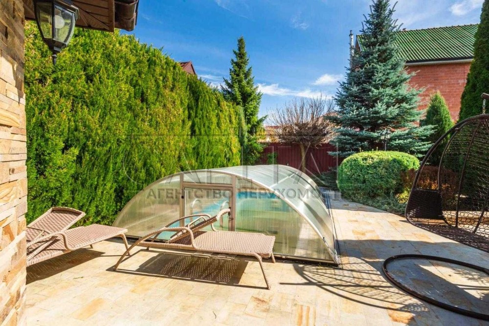 На території також є басейн з розсувною алюмінієвою системою закривання, літня альтанка, сауна, що окремо стоїть, критий навіс на три авто, господарські споруди.