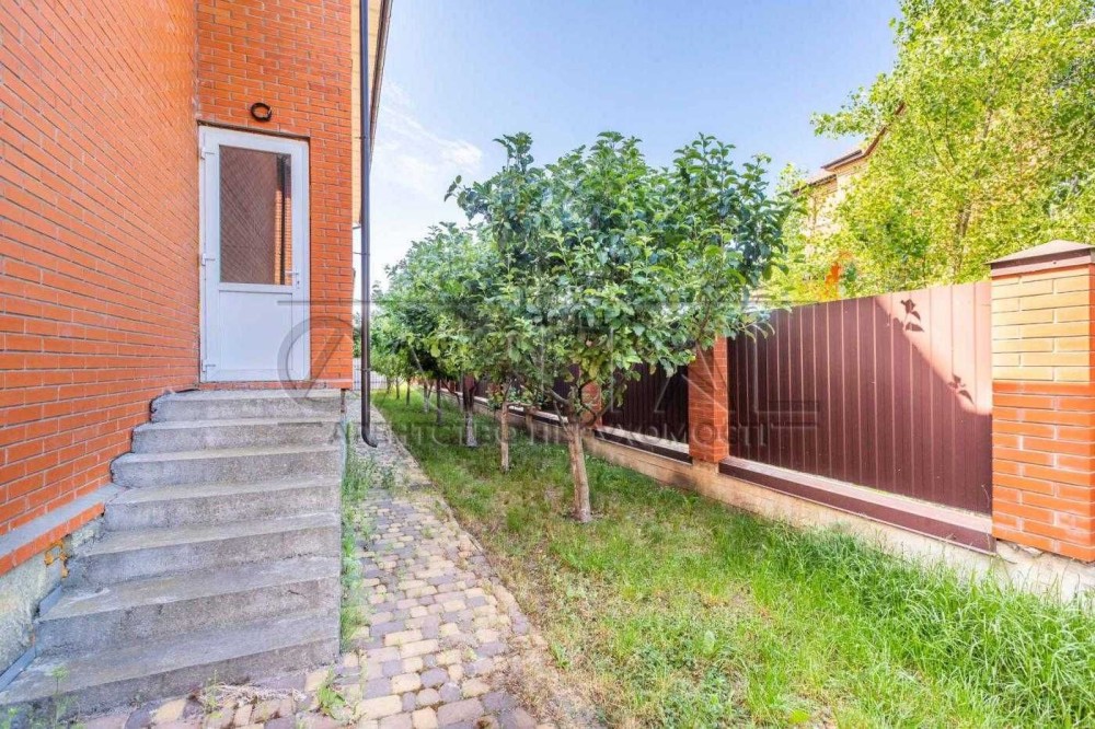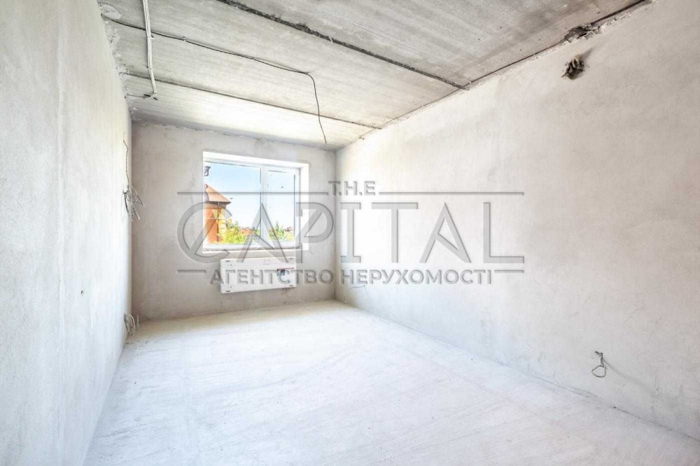 Продається новий індивідуальний житловий будинок котеджного типу загальною площею 131 м.кв. під чистове оздоблення, розташований в селі Крячки Фастівського (колишнього Васильківського) району Київської області на території нового житлового масиву із сучасною котеджною забудовою, що перебуває на відстані 20 км від станції метро «Теремки» міста Києва та за 1,5 км від міста Васильків. Житловий будинок складається з першого та мансардного поверхів. Загальна площа будинку із допоміжними спорудами становить 173,1 м.кв., з яких: а) площа будинку ‒ 131,0 м.кв., у тому числі житлова (основна) ‒ 94,1 м.кв. та допоміжна (підсобна) ‒ 39,6 м.кв.; б) площа тераси – 23,1 м.кв.; в) площа трьох балконів – 13,4 м.кв. (5,8 + 4,9 +2,7 м.кв.); площа ґанку – 5,6 м.кв. Котедж вміщує в собі 5 (п’ять) доволі просторих кімнат, 2 (два) санвузли (на кожному із поверхів), 1 (одне) технічне приміщення (котельня або бойлерна), 2 (два) коридори, 1 (одну) вітальню із виділеною еркером обідньою зоною, що поєднана з кухнею. Із вітальні є окремий вихід на велику терасу, з якої відкривається затишний вигляд на внутрішній двір. Кожна з трьох мансардних кімнат має окремий вихід на балкон. Над усією площею мансардного поверху розташоване містке горищне приміщення. Будинок приєднаний до електропостачання потужністю ‒ 12кВт (3 окремих фази). Має свердловину глибиною 55 метрів із фактичним дебітом (спроможною потужністю) ‒ 2,5 м.куб./год. та каналізацію септик з переливом на 11 м.куб. На усій площі першого (крім житлової кімнати) та у санвузлі мансардного поверхів встановлена система водяної теплої підлоги фірми «Rehau». По котеджу розведені: опалення, водопостачання і каналізація. В будинку передбачена можливість встановлення камінної топки, а також приєднання котеджу до газорозподільної мережі та всесвітньої мережі Інтернет. Індивідуальний житловий будинок розташований на земельній ділянці площею 0,075га з цільовим призначенням – (02.01) для будівництва і обслуговування житлового будинку, господарських будівель і споруд (присадибна ділянка). Під житловою забудовою перебуває 0,0115га земельної ділянки, решта 0,0635га займає просторий двір. Кадастровий номер земельної ділянки: 3221487004:03:006:0328. Земельна ділянка огороджена парканом із монолітного фундаменту, що опорядковане металевим штахетом із обох боків та металевим профілем з тильної та фасадної сторін. Заїзд у двір має відкатні ворота. На території двору (перед будинком) облаштоване загальне паркомісце на 2 (два) автомобіля, решта двору засіяне газонною травою. Котедж побудований з якісних матеріалів за проектом європейського архітектурного бюро. Так, фундамент, перекриття та міжповерхові сходи ‒ монолітні. Стіни будинку збудовані з газоблоку AEROC D500 (товщиною 300мм), що утеплений пінопластом 100мм. Внутрішні міжкімнатні перегородки виконані із цегли. Дах ‒ металочерепиця фірми «Ruukki», що утеплений мінераловатними плитами загальною товщиною 200мм. Вікна вироблені з профілю фірми «Rehau» серії EVRO 70. Фасад котеджу покритий акриловою штукатуркою. Будинок за усім периметром має вимощення шириною 0,9 метри, що облаштоване фігурними елементами мощення (ФЕМ). Зручне ергономічне планування будинку, а також наявність високих стель обох поверхів дає можливість відчувати себе вільно і затишно. Завдяки правильному утепленню зовнішніх стін будинку, у ньому прохолодно влітку та тепло вз
