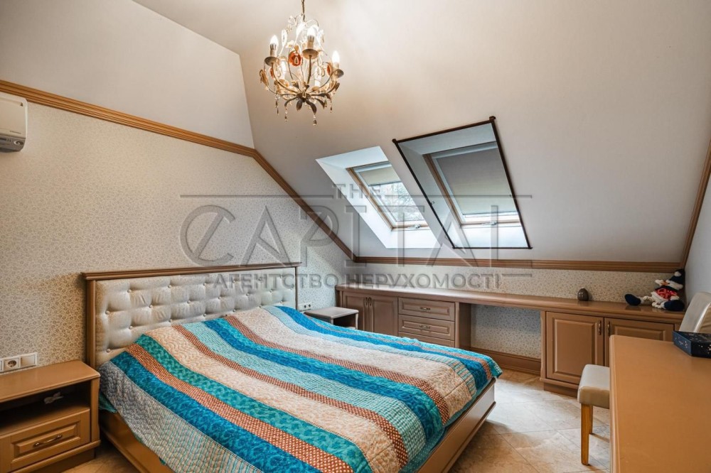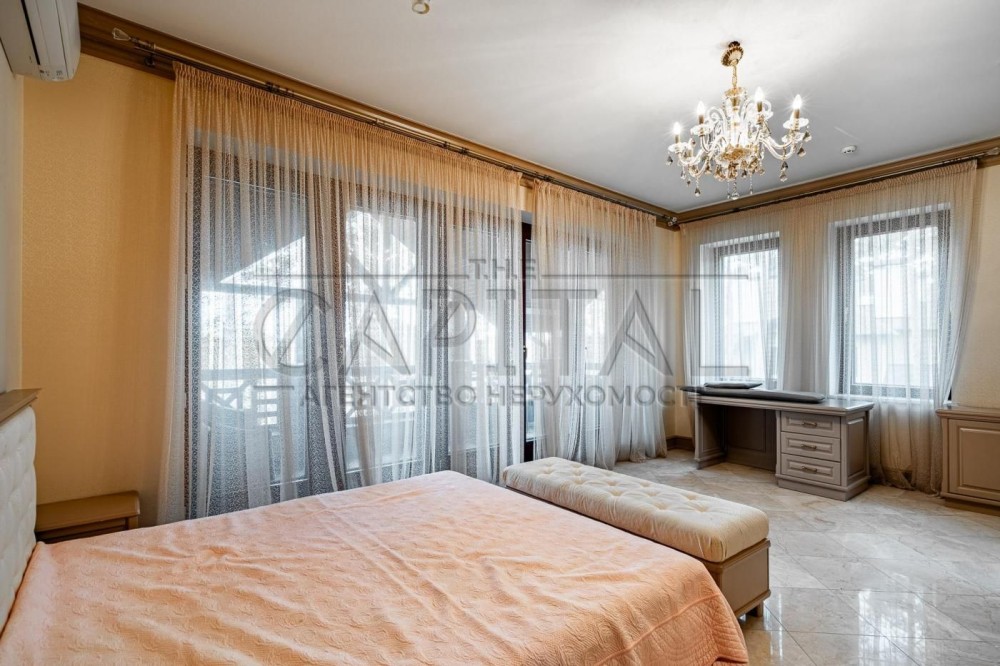 Продаж будинку, Кийлів, Бориспільський р-нПродажа дома, Кийлов, Бориспольский р-нПропонується на продаж Будинок (580м2) в престижному котеджному містечку в с. Кийлов, Бориспільський напрямок.Планування:- простора кухня- окрема їдальня- 7 спалень- 5 обладнаних санвузлів роздільних з душовими і ванною- 5 гардеробних- кабінет- більярдна- 2 подвійні двері на терасу з зоною барбекю і вхідні,- навіс для тераси або для 2-х машин,- гаражЄ цокольний і мансардний поверх.Про котеджне містечко:Гранітна набережна, причал для катерів закритий і відкритий, власний піщаний пляж на річці (це не притока, а натуральна річка русла Дніпра, на території натуральне озеро з джерелами, очищене, облагороджене і зариблене.Відкритий басейн з підігрівом (економний земляний насос) із солоною водою 18 м,Ліс, сходи та мисливське господарство (елітний мисливський клуб 300 м від входу)Поруч для сніданку/вечері - клуб Селфрідж.Недалеко - страусина ферма зі сніданками та дитячими екскурсіями.Доставка їжі з Заферрано.Школа в Золочі та Процеві близько.Відмінні якісні дороги без трафіку.Набережна Дніпро 5 хв на велосипеді - 35 км.Охорона воєнізована з води і по всій території (відеоспостереження)Обслуговування території і будинків, окремий будинок для персоналу.Потужний автономний генератор, вмикається автоматично на вихідні і за запитом в будь-який час, оплата ділиться на всі 10 котеджів.Дитячий майданчик, мульти-футбол, теніс, спортивний майданчик з нічним освітленням,Окремий майданчик для баскетболу та бадмінтону, відкритий спортмайданчик для силових тренувань.До міста, до центру на правий берег - 45 хв їзди на машині.#A16652
