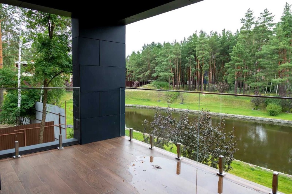 4 спальні, простора кухня-вітальня, 3 санвузли, 3 гардеробні, технічне приміщення, великі тераси на обох поверхах із видом на озеро.