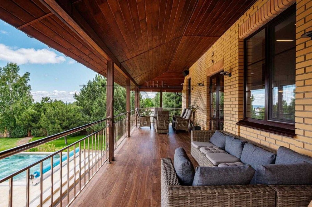 На ділянці є гостьовий 2-поверховий будинок з фінською лазнею та турецьким хамамом, басейном з гідромасажем, з каміном, опалюваний газовим котлом або електричним (на вибір), плюс будиночок для охорони (сімейної пари).