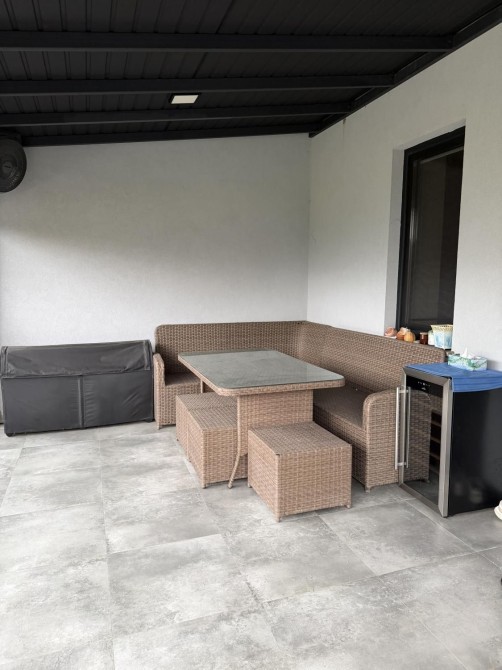Інтер’єр виконаний у сучасному стилі з використанням якісних матеріалів. Будинок повністю укомплектований меблями та побутовою технікою — все залишається новому власнику.