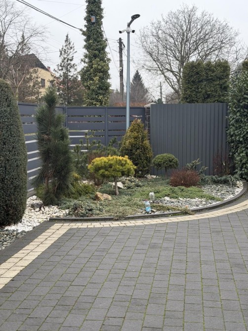 Доглянута прибудинкова територія з ландшафтним озелененням та автоматичним поливом. Двір вимощений бруківкою, огороджений парканом з автоматичними воротами. Встановлені системи сигналізації та відеоспостереження. Додатково облаштовані мангальна зона та господарське приміщення.
