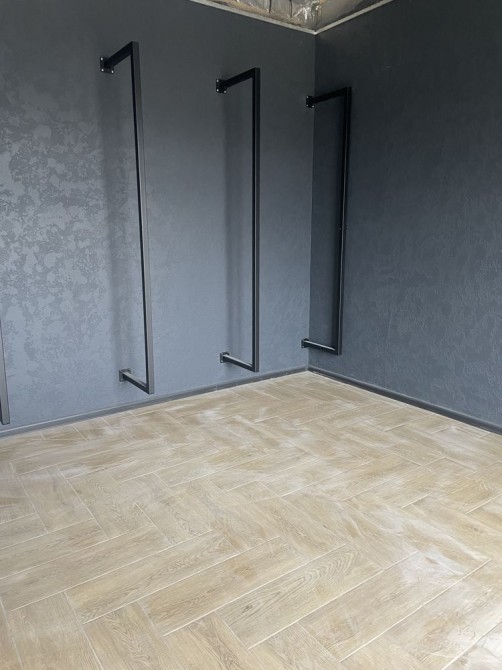 Плитка на підлозі в спальні, кухні - гостиній та робоча зона і частково в маленькому санвузлі. Встановлена інсталяція