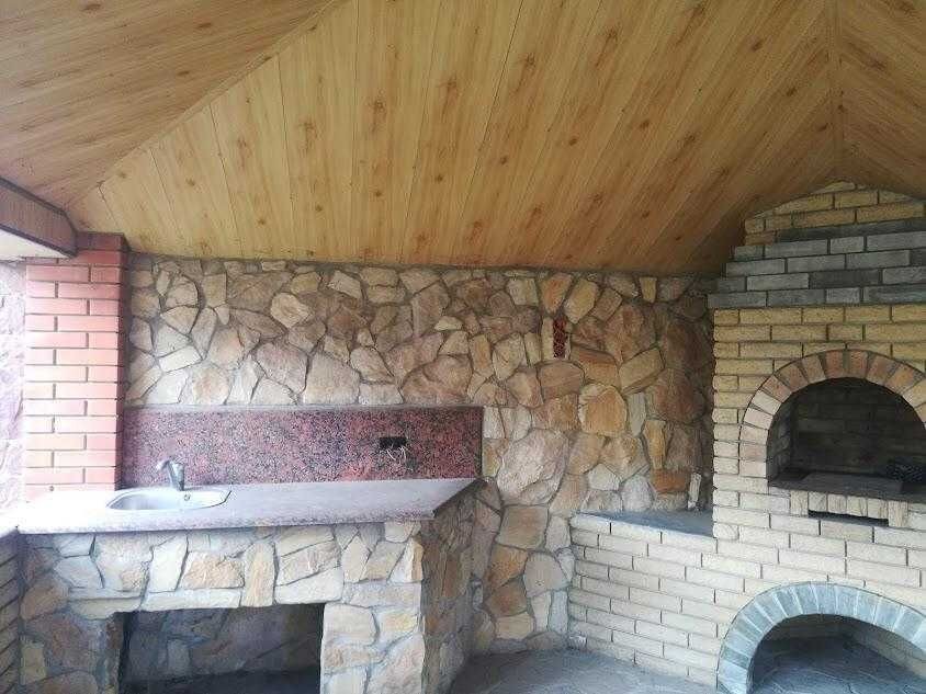 Повністю готова альтанка з водопроводом, кам'яний гриль. Підлога - натуральний камінь, стільниці та перила - мармур.