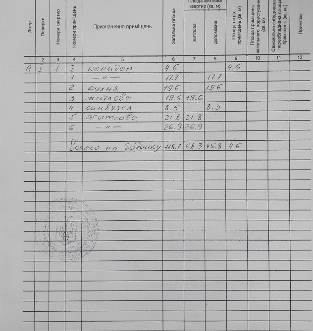 Три окремі кімнати, просторі кухня та коридор.