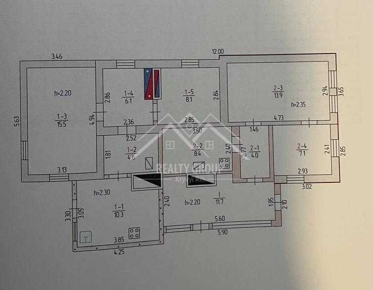 Загальна площа: 44.6 кв.м.