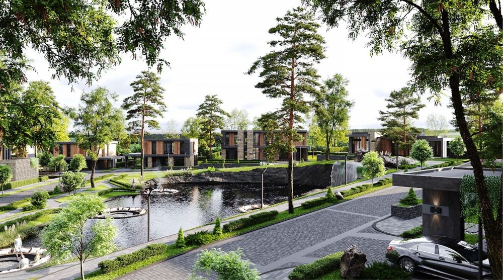 Пропонується до продажу сучасний будинок у закритому котеджному містечку «9 елементів» — статусна локація серед лісу, з приватністю та швидким доїздом до Києва.
