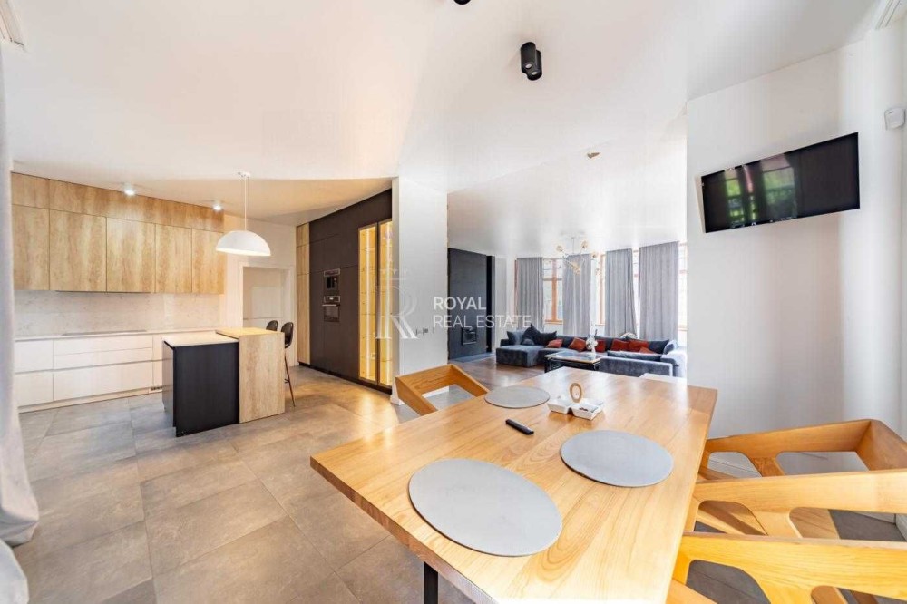 Інтер'єр будинку оформлений за індивідуальним авторським проектом з використанням екологічно чистих матеріалів. Встановлено нові меблі та сучасна побутова техніка від світових виробників.