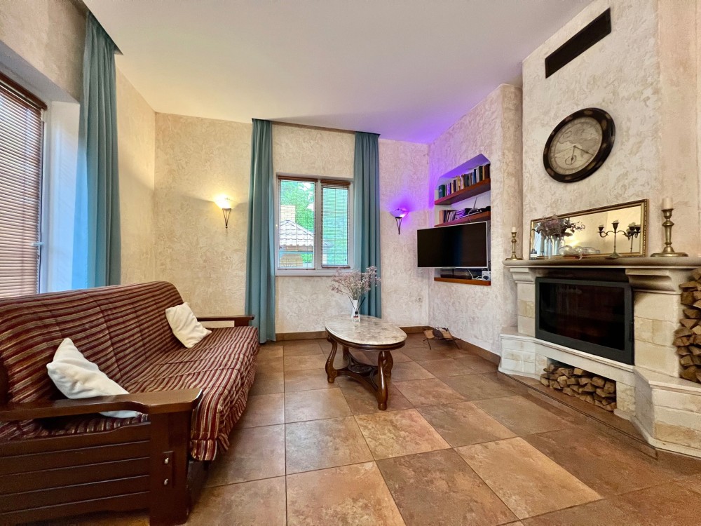 В будинку 3 окремі кімнати та простора кухня-вітальня з каміном
