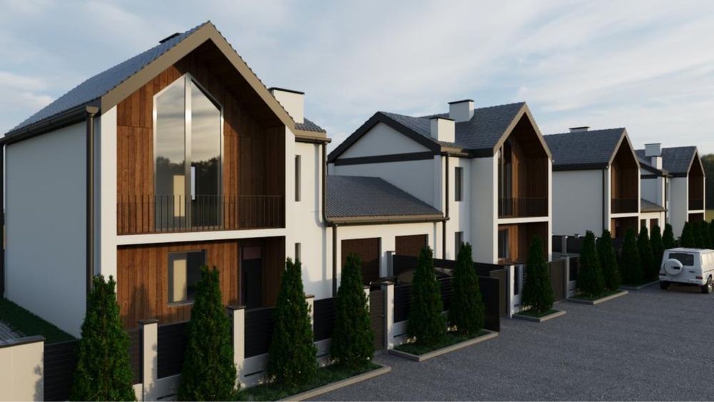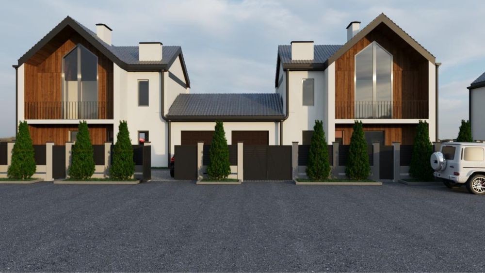 • Формат: Будинок з’єднаний із сусідом гаражами, має окреме подвір’я (6 соток).