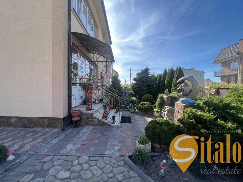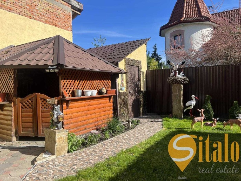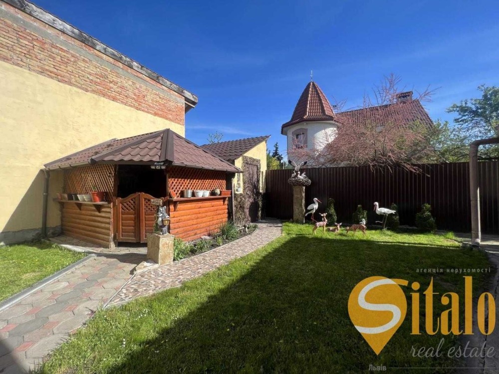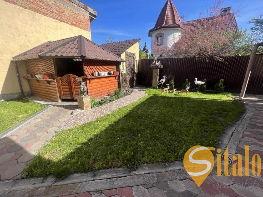 Теріторія облогорожена гарними рослинами, є фонтан, бруківка , альтанка, гараж та літня кухня та півниця.