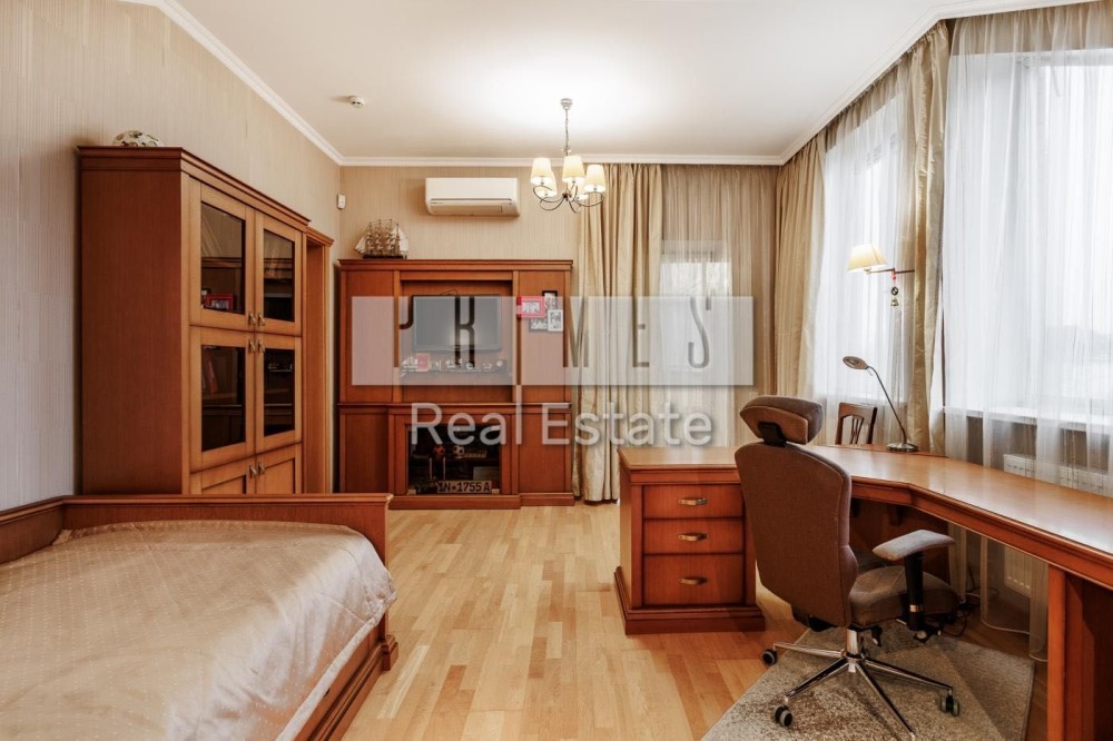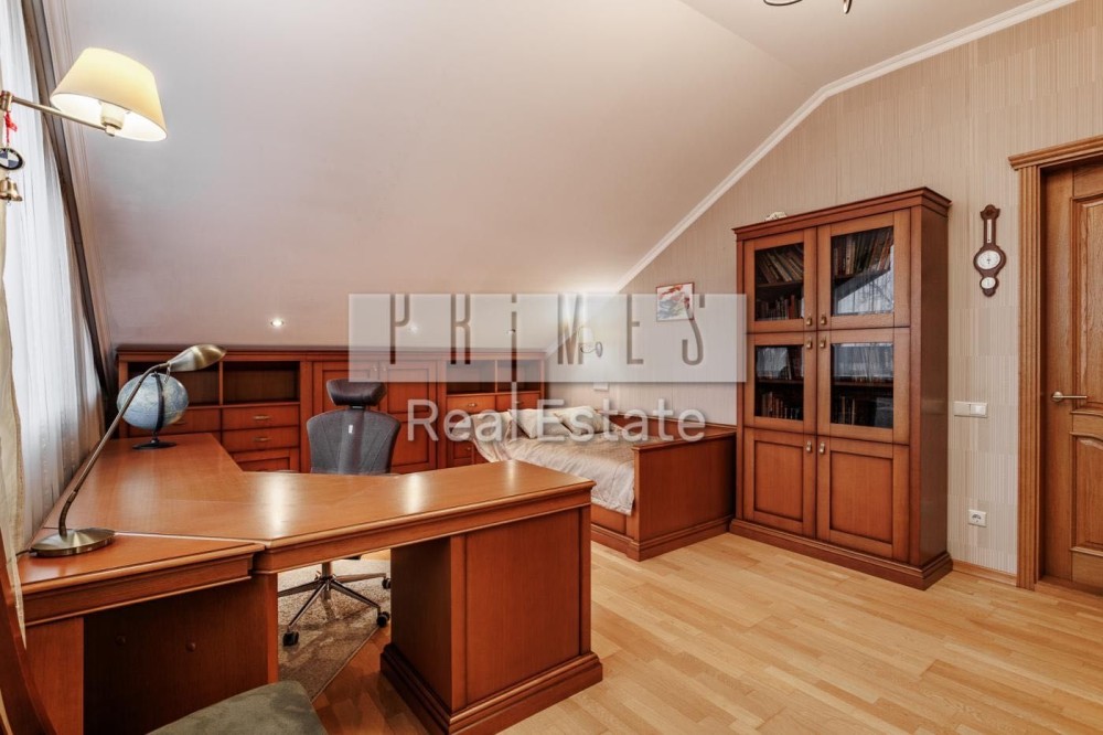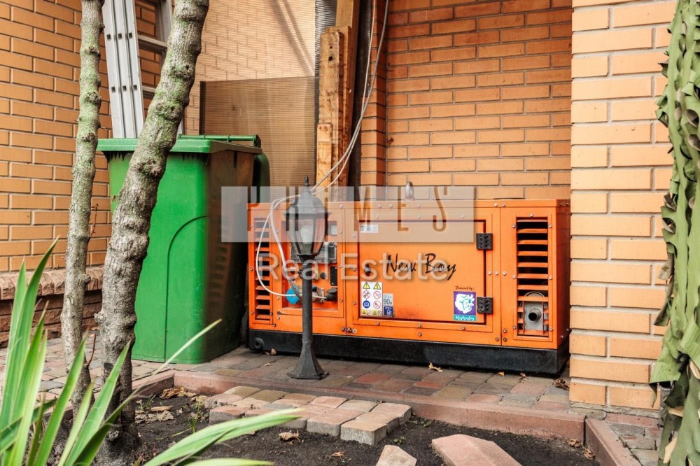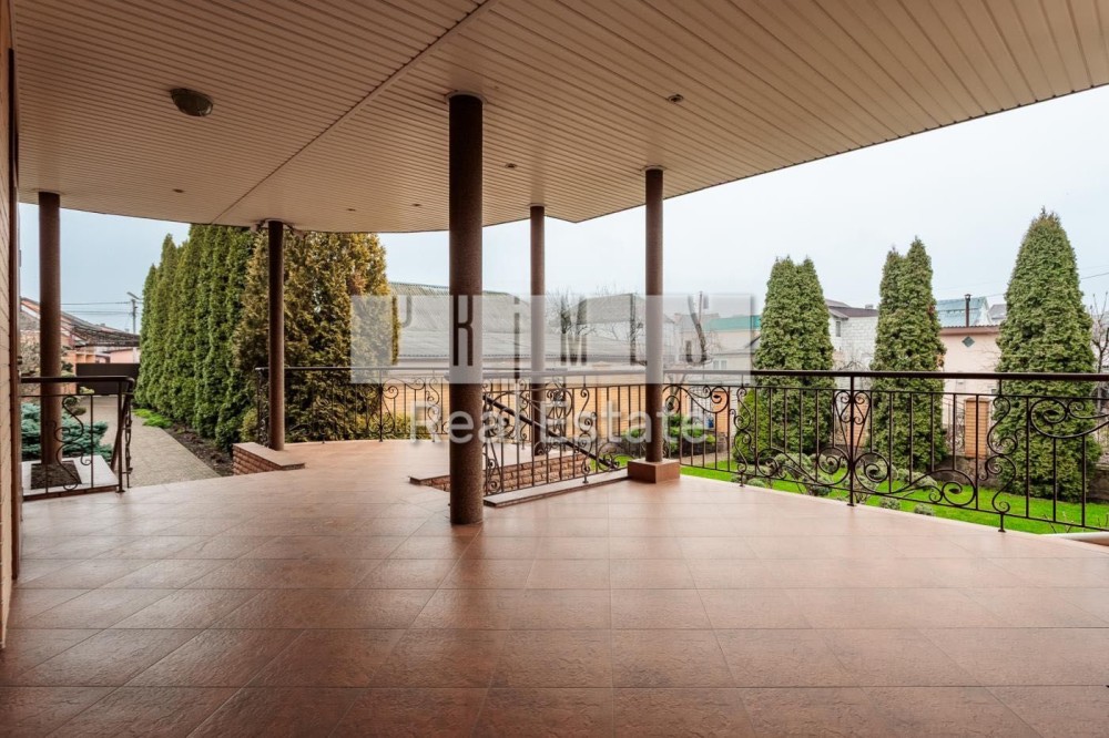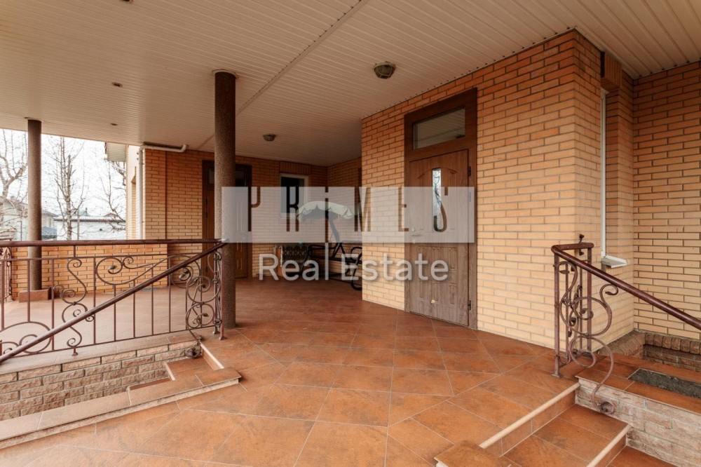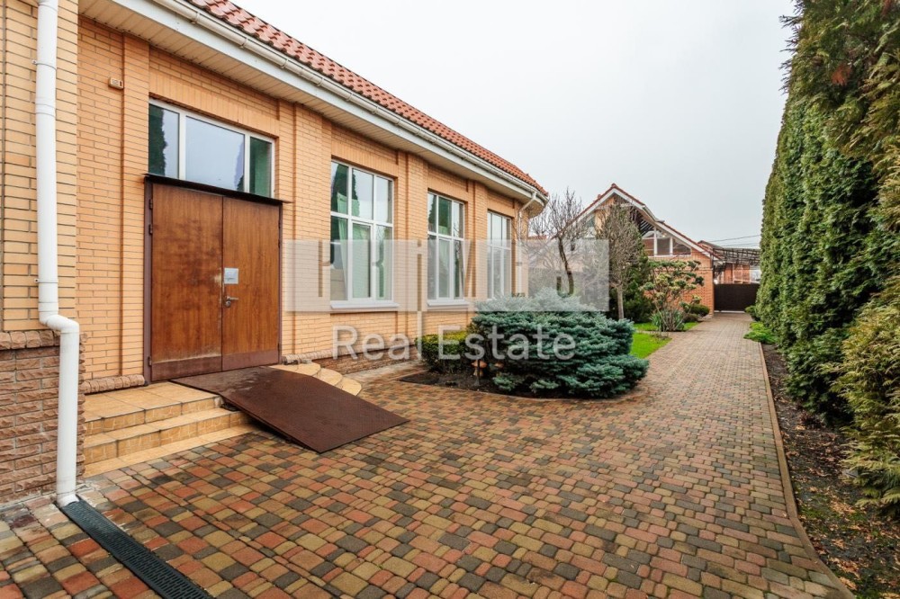 Софіївська Борщагівка, Києво_Святошинський рн. Сучасний обладнаний двоквартирний житловий будинок 420м.2, окремою будівлею зимового басейну площею 85м.2 та гостєвим будинком з гаражем на два авто, цегляна бесідка з каміном. Ділянка площею 16,5 сотки украшена та озеленена. Електрика: два особисті рахунки на 50кв. та 5кв., додатково дизель генератор з автоматикою на 11 кв.ч . Водопостачання та каналізація: централізована власна свердловина та власний септик. Зручне розташування – 350м. від Кільцевої дороги, у районі повороту з Кільцевої дороги на м. Вишневе. По вулиці проходять маршрутки до ст. метро "Васильківська" та "Академ містечко". Розвинута інфраструктура: у радіусі до 1км банки, супермаркети, школи, приватні дитячі садки, школи, спортзали, салони краси та інше. На території ландшафтний дизайн: туї, смарагди, ялинки, самшиті, спірея, листяні дерева, інші декоративні насадження, газон. Основний будинок розташований у глибині ділянки, із заїздом від воріт 20м. Будинок побудований з екологічно чистих матеріалів, червоний керамічний цегла з внутрішньої сторони та облицювальний цегла ззовні, керамічний черепиця. Власна лінія електропостачання безпосередньо від трансформатора на 50 кв. Додатково встановлено дизель генератор на 11кв із системою автоматичного вмикання та виключення при зникненні електрики. По всьому, будинку встановлено охоронну та пожежну сигналізацію, систему відео спостереження, а також будинок під цілодобовою охороною та контролем ДЗГ. Стіни оздоблені дорогою декоративною штукатуркою (Ottocento, Marmofloat, Baldini Vernici). Підлога мармурова плитка, мозаіка, а також паркетна дошка. По всьому будинку, де обладнано кахель, водяна тепла підлога. В основному та гостєвих будинках 2 котли німецького виробника Buderus, власна свердловина, а також є централізоване водопостачання та каналізація. Встановлена ​​система очищення води антибактеріальна та вугільна фільтрація на всі приміщення та обладнання. Двері та сходи з натурального дерева (дуб). Сантехніка та побутова техніка відомих світових брендів. Будинок укомплектований дорогими меблями з натуральних матеріалів. Гараж на 2 авто та можливе паркування на під навісом території ще 3-4 авто.