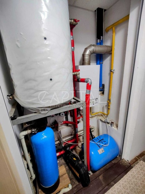 Опалення: тепловий насос 15кВт (для теплового насосу є 4 свердловини по 80 м), та як запасний варіант є газове опалення. Тепла підлога як і водяна так і електрична.