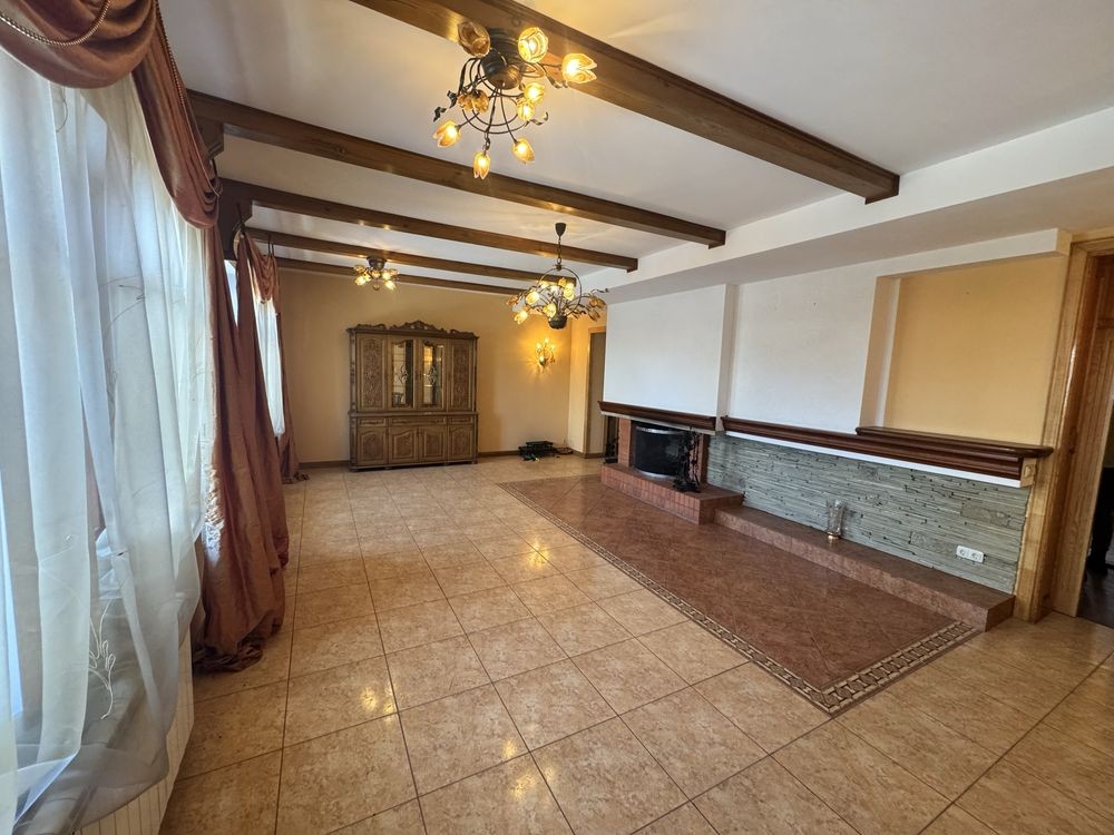 1 поверх- кухня , велика зала з каміном , відпочинкова зона, гардеробна кімната та санвузол.