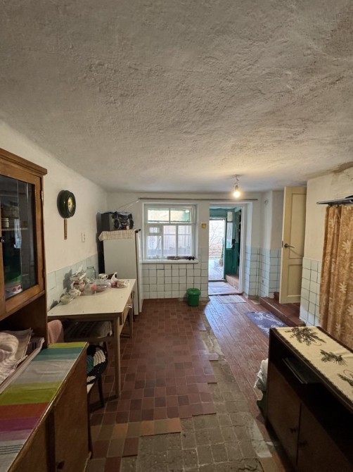 Перша частина площею 53.3м2 має: кухню , суміжний санвузол, коридор та три кімнати , працююча піч з грубою на іншу частину будинку! Індивідуальне опалення - газовий котел!