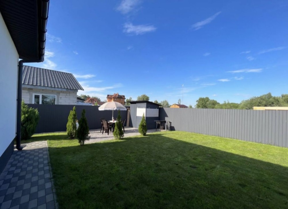 Продам сучасний, комфортний будинок 120кв. В будинку 4 кімнати. Будинок побудовано з якісних матеріалів, два котла опалення( газовий та електро), тепла підлога та батареї, скважина, септик, засіяний газон, висаджені квіти та дерева, навіс для авто, сигналізація, відеонагляд, автоматика. Площа ділянки 5 соток.