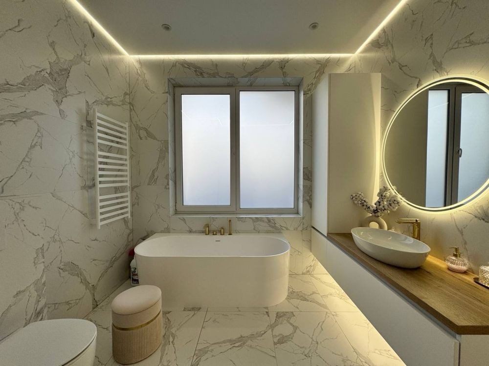 Оснащення: тепла підлога, газовий та електричний котли, сантехніка Villeroy Boch, техніка Siemens.