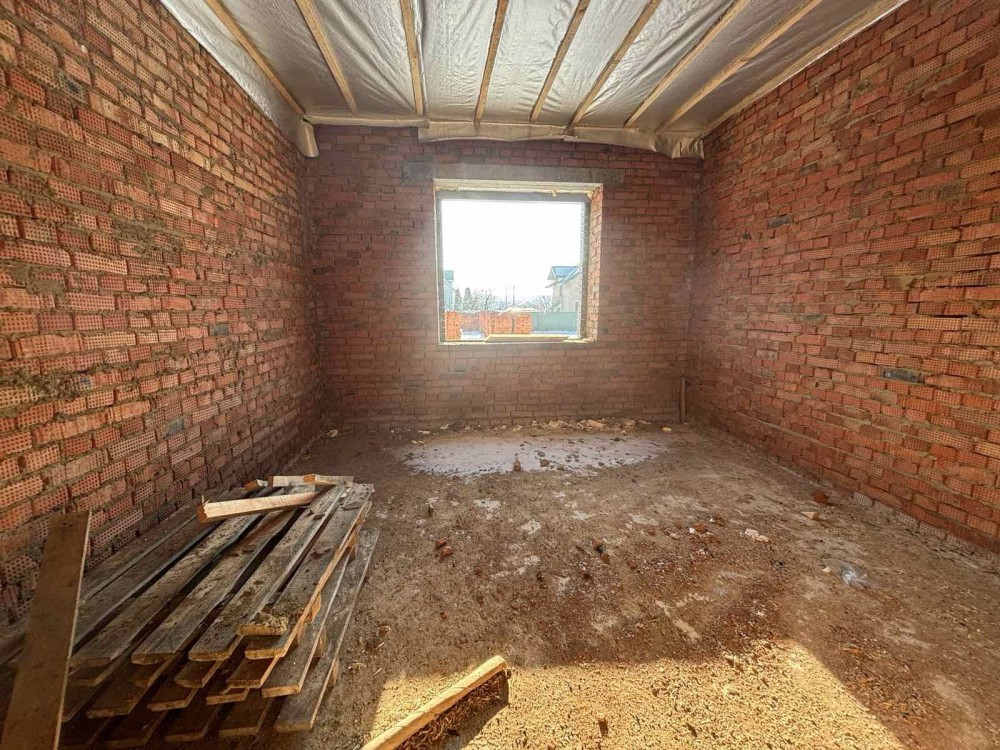 Продається будинок 86 м.кв., в с. Крехаів, вул. Деснянська (Гагаріна) 33, Остерська громада, Чернігівська обл.. Будівля складається з одноповерхової утепленоі дерв’яноі хати та двоповерхової цегляної ,між якими є суміжні двері. Має один суцільний дах з метало черепиці. Стара хата площею 42,8 кв.м. має дві кімнати, «сінці» (комора), веранда, також є дров’яне опалення – груба. Більш нова, цегляна хата, площею 42,9 кв.м., має два поверхи: три кімнати, сходи та тераса , є електроопалення на першому поверсі. Горище також можна перепланувати під ще одну кімнату. Загальна площа будинку 85,7 кв.м., земельна ділянка 0,3 га (з яких 0,25га земля загального користування). На територіІ розташовані сарай, погреб, санвузол (туалет) та велика літня альтанка. Будинок розташований в мальовничому місці – до річки 100м. Має газопостачання, електропостачання (двохзонний лічильник), скважина на воду 7м. Дальність від Києва – 45км.