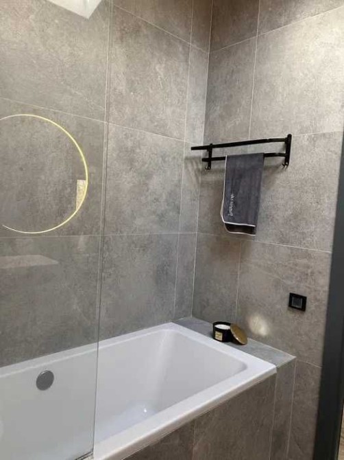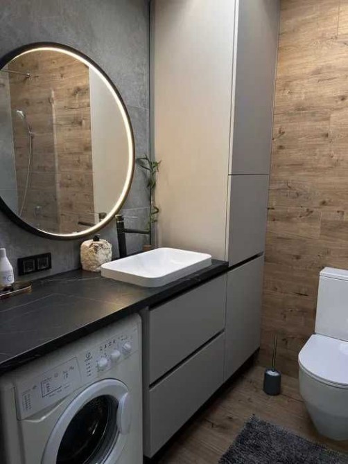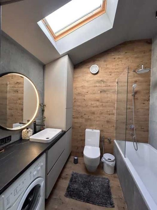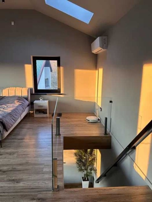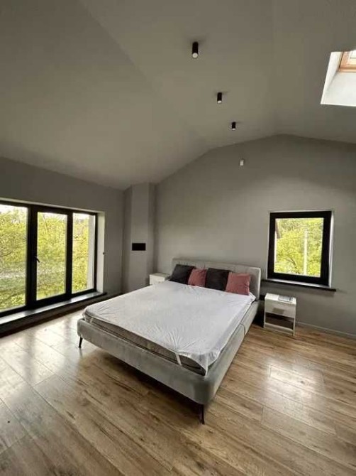 Спальня з двоспальним ліжком та ортопедичним матрацом, гардеробна, санвузол. Кондиціонер (до -20°), бойлер на 80 л, телевізор 65”.