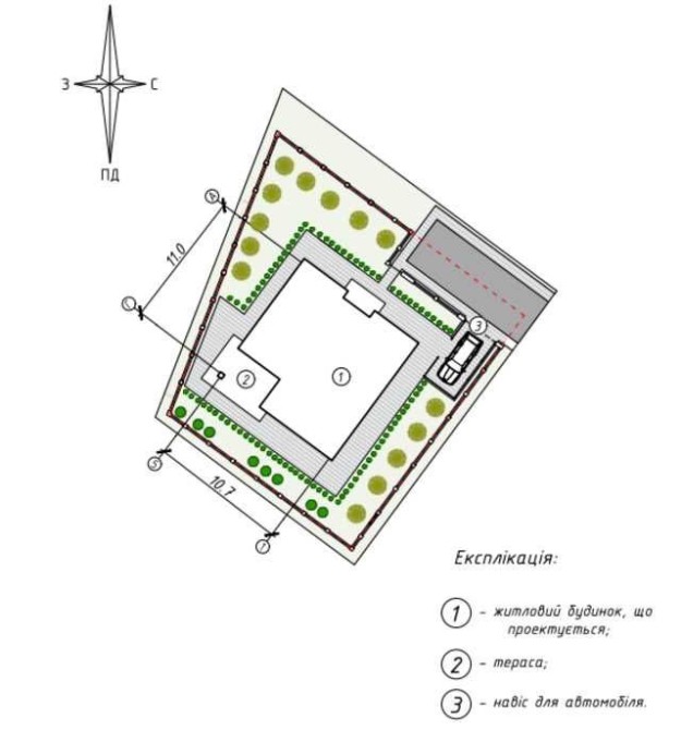 Ділянка буде огороджена огорожею( профнастил) та відкатні ворота.