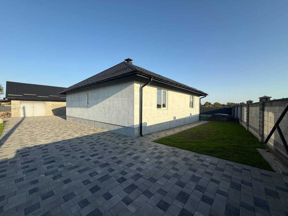 Продається новий індивідуальний житловий будинок котеджного типу загальною площею 131 м.кв. під чистове оздоблення, розташований в селі Крячки Фастівського (колишнього Васильківського) району Київської області на території нового житлового масиву із сучасною котеджною забудовою, що перебуває на відстані 20 км від станції метро «Теремки» міста Києва та за 1,5 км від міста Васильків. Житловий будинок складається з першого та мансардного поверхів. Загальна площа будинку із допоміжними спорудами становить 173,1 м.кв., з яких: а) площа будинку ‒ 131,0 м.кв., у тому числі житлова (основна) ‒ 94,1 м.кв. та допоміжна (підсобна) ‒ 39,6 м.кв.; б) площа тераси – 23,1 м.кв.; в) площа трьох балконів – 13,4 м.кв. (5,8 + 4,9 +2,7 м.кв.); площа ґанку – 5,6 м.кв. Котедж вміщує в собі 5 (п’ять) доволі просторих кімнат, 2 (два) санвузли (на кожному із поверхів), 1 (одне) технічне приміщення (котельня або бойлерна), 2 (два) коридори, 1 (одну) вітальню із виділеною еркером обідньою зоною, що поєднана з кухнею. Із вітальні є окремий вихід на велику терасу, з якої відкривається затишний вигляд на внутрішній двір. Кожна з трьох мансардних кімнат має окремий вихід на балкон. Над усією площею мансардного поверху розташоване містке горищне приміщення. Будинок приєднаний до електропостачання потужністю ‒ 12кВт (3 окремих фази). Має свердловину глибиною 55 метрів із фактичним дебітом (спроможною потужністю) ‒ 2,5 м.куб./год. та каналізацію септик з переливом на 11 м.куб. На усій площі першого (крім житлової кімнати) та у санвузлі мансардного поверхів встановлена система водяної теплої підлоги фірми «Rehau». По котеджу розведені: опалення, водопостачання і каналізація. В будинку передбачена можливість встановлення камінної топки, а також приєднання котеджу до газорозподільної мережі та всесвітньої мережі Інтернет. Індивідуальний житловий будинок розташований на земельній ділянці площею 0,075га з цільовим призначенням – (02.01) для будівництва і обслуговування житлового будинку, господарських будівель і споруд (присадибна ділянка). Під житловою забудовою перебуває 0,0115га земельної ділянки, решта 0,0635га займає просторий двір. Кадастровий номер земельної ділянки: 3221487004:03:006:0328. Земельна ділянка огороджена парканом із монолітного фундаменту, що опорядковане металевим штахетом із обох боків та металевим профілем з тильної та фасадної сторін. Заїзд у двір має відкатні ворота. На території двору (перед будинком) облаштоване загальне паркомісце на 2 (два) автомобіля, решта двору засіяне газонною травою. Котедж побудований з якісних матеріалів за проектом європейського архітектурного бюро. Так, фундамент, перекриття та міжповерхові сходи ‒ монолітні. Стіни будинку збудовані з газоблоку AEROC D500 (товщиною 300мм), що утеплений пінопластом 100мм. Внутрішні міжкімнатні перегородки виконані із цегли. Дах ‒ металочерепиця фірми «Ruukki», що утеплений мінераловатними плитами загальною товщиною 200мм. Вікна вироблені з профілю фірми «Rehau» серії EVRO 70. Фасад котеджу покритий акриловою штукатуркою. Будинок за усім периметром має вимощення шириною 0,9 метри, що облаштоване фігурними елементами мощення (ФЕМ). Зручне ергономічне планування будинку, а також наявність високих стель обох поверхів дає можливість відчувати себе вільно і затишно. Завдяки правильному утепленню зовнішніх стін будинку, у ньому прохолодно влітку та тепло вз