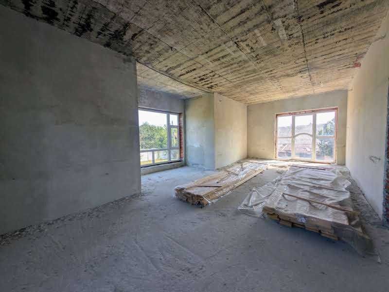 Внутрішні роботи: поштукатурені стіни, залиті чорнові стяжки, розведена електропроводка.