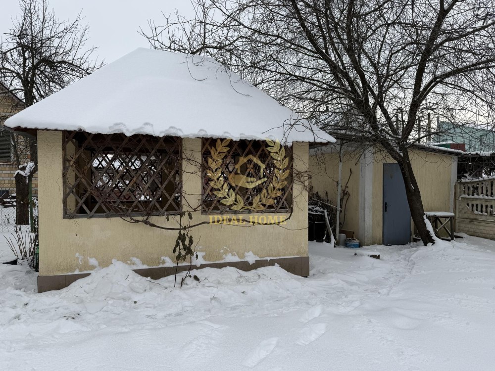 Продається будинок із земельною ділянкою в Оболонському районі міста Києва, дачний кооператив Дніпровський-1. У пішій доступності – Дніпро та Міністерські озера. Будинок розташований на квадратній ділянці 4 сотки з плодовими деревами. Плодові дерева та кущі: черешня, яблуні, великий горіх, кизил, вишні, виноград, троянди, туї. Земля у приватній власності, цільове призначення – для садівництва. У дворі – навіс для паркування 2 авто, альтанка та хоз приміщення. Будинок цегняний. Стіни будинку утеплені пінопластом, дах – мінеральною ватою. З меблів: у залі - диван, речові шафи: зал - 60*210*200, також 70*150*180, передпокій - 38*203*160. З побутової техніки: бойлер Bosch на 100 літрів, холодильник та електро плита Indesit. Опалення електричне від теплового насоса CooperHunter (до-25). Тепловий насос працює влітку на охолодження, взимку на обігрів. Є підвал. По вулиці є газ. У будинку є міське водопостачання. Каналізація –двокамерний септик. Чудовий варіант як для дачного відпочинку, так і для постійного проживання.