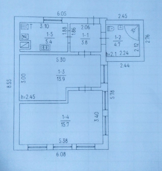 • Общая площадь 43.5 м2