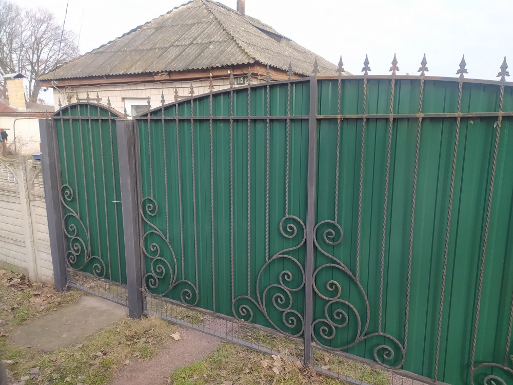 встановлені ковані ворота з хвірткою;