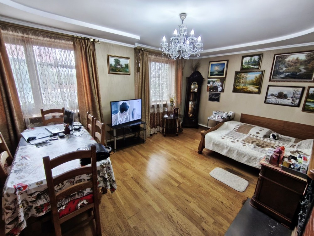 Будинок в доброму стані, має всі комунікації, 2 види опалення, 6 кімнат, простора кухня, великий підвал, баня-сауна та інше. Всі вікна, двері, підлога та міжкімнатні двері з масиву дерева. 2 просторі гаражі, велика альтанка. 2 заїзди на подвір'я, просторий задній двір.