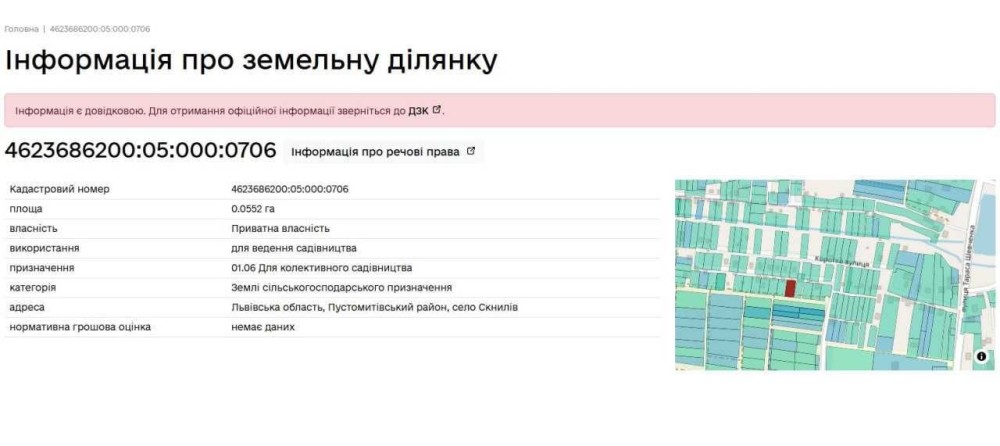 Площа землі: 0,0552 га (приватна власність).