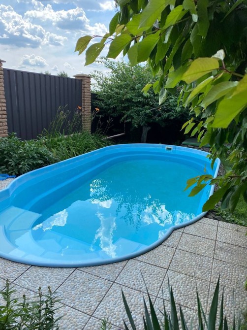 На території є літній будинок, басейн, вольєр, парковка для машини з накриттям.