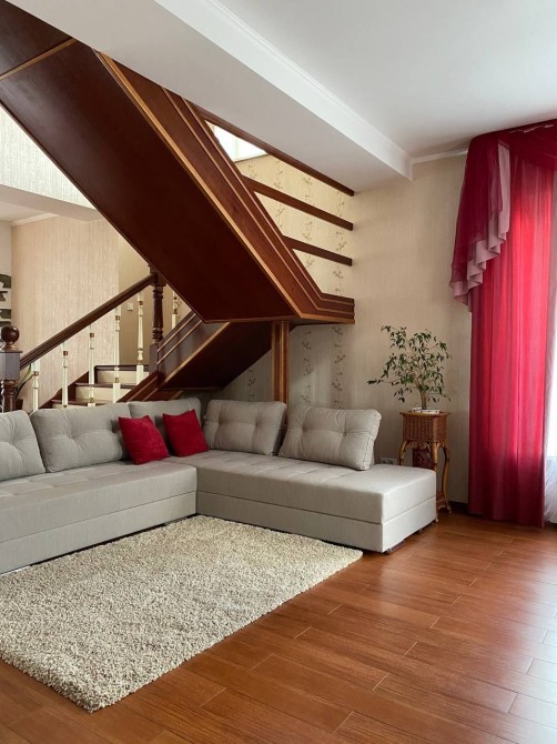 Терміновий продаж 2-о поверхового просторого і якісно-збудованого за індивідуальним архітектурним проектом, будинку площею 176 м² в с. Пухівка в Броварському р-ні. Будинок розташований в престижному закритому товаристві з охороною. Будинок побудований з червоної цегли, утеплений мінеральною ватою ватой ROCKWOLL 80 мм, фасад з цегли Фагот, кровля - фінська бітумна черепиця "katepal", двокамерні вікна "Века" з автоматичними захисними ролетами кольору золотий дуб, декоративна штукатурка, іспанская плитка, дуб паркет-дошка, імпортна сантехніка. Ділянка розміром 14 соток має правильну прямокутну форму, за проектом розміщено індивідуальний житловий 2-о поверховий будинок та гараж на 2 авто (53м2). Планування будинку забезпечує комфортне проживання великої родини. Планування: 5 спален, кухня, вітальня, 2 с/в. Якісний ремонт, дерев'яні меблі, кухонний гарнітур з натурального дубу. Під’їзд до будинка асфальтованою освітленою дорогою, глухий кут вулиці з виходом на піщаний пляж р. Десна, поруч ліс, озера, ресторан, магазин, зупинка громадського транспорту та бази відпочинку. Живописне, красиве місце, чисте повітря, для постійного проживання, все навколо забудовано. Інженерія та комунікації: Електрика — Виділена лінія електроенергії на 20кВт. • Газовый двоконтурний котел • Електрокотел • Діючий камін • Бойлер • Система очищення води • Кондиціонери • Підключено інтернет • Автоматичні ролети на вікнах. • Скважина • Каналізація — два переливні дренажні септики • Автополив • Сигналізація та відеоспостереження • Автоматичні ворота. Будинок продається з меблями та технікою. 218000 у. о. Можливий торг!